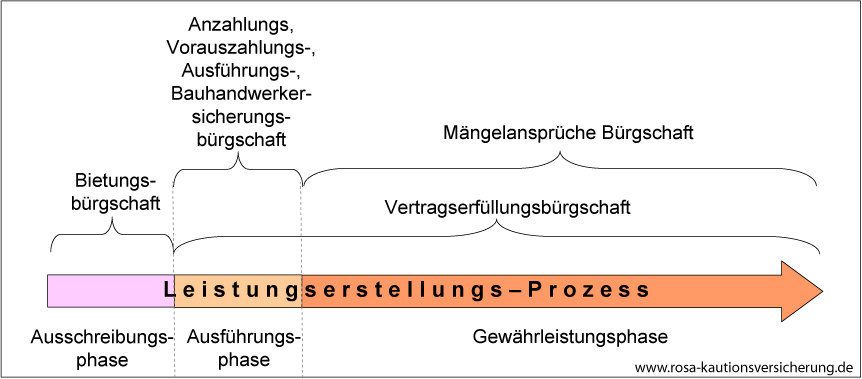 Die folgende Grafik stellt die gängigsten Bürgschaftsarten auf einem Zeitstrahl dar.